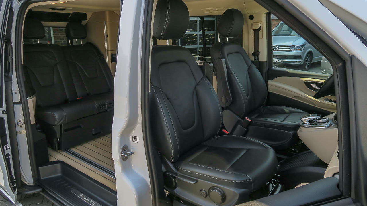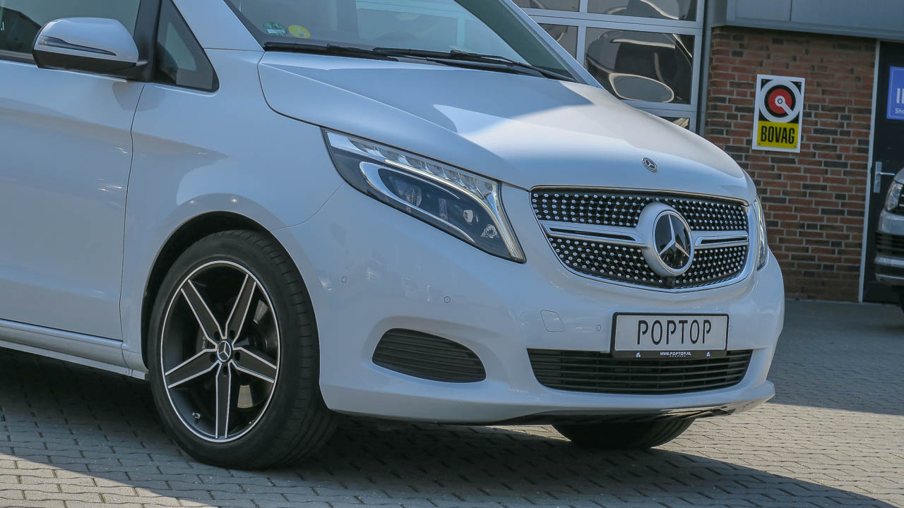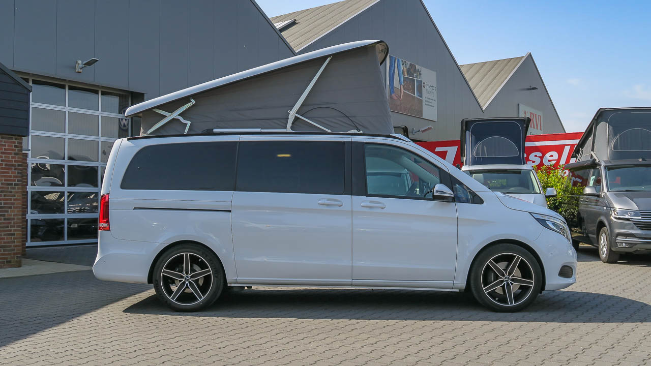 9134 Lakkleur bergkristalwit metallic MB 9134 BS1 Remklauwen met opschrift ‘Mercedes-Benz’ C74 Opschrift instap ‘Mercedes-Benz’ verlicht CF8 Sportonderstel CL1 In hoek en hoogte verstelbaar stuurwiel CL3 Met leder bekleed stuurwiel CL4 Multifunctioneel stuurwiel met boordcomputer CM2 Bumper en stylingaccessoires gespoten in carrosseriekleur E07 Wegrijhulp voor op hellingen E28 Extra accu voor naderhand gemonteerde apparatuur E34 Bufferaccu voor starten E36 Extra scheidingsrelais bij accu E70 Schakelaarstand onderste bedieningspaneel ED4 Gelaccu 12 V/92 Ah ED5 Parametreerbare speciale module EJ9 COMAND Online EL9 2-wegluidsprekers voor en achter ES2 Stekkerdoos 12V kofferruimte/laadruimte ES3 12V-aansluitingen voor zitplaatsen rechts- en linksachter ET4 Actieve afstandsregeling DISTRONIC EY5 Mercedes-Benz noodoproepsysteem EZ6 Parkeerpakket met 360-graden camera EZ7 Actieve parkeerassistent F48 Verwarming ruitensproeierinstallatie F65 Buitenspiegels automatisch inklapbaar F66 Afsluitbaar dashboardkastje F69 Buitenspiegels elektrisch verstelbaar en verwarmd met geïntegreerd knipperlicht F72 Buiten- en binnenspiegel automatisch dimmend FC1 Elektronische sleutel in chroomlook FG0 Middenconsole met rolscherm FH0 Sierdelen pianolaklook, zwart FLK Luxueuze combi FP3 Spiegelpakket FP5 Sportpakket exterieur FS5 Verlichte spiegel voor zonneklep FY1 Diefstalbeveiligingspakket FZ8 Comfortopening en -sluiting met infraroodafstandsbediening G42 7G-TRONIC Plus H00 Toevoerkanaal voor warme en koele lucht naar passagierscompartiment H12 Warmwater-extra verwarming H15 Stoelverwarming bijrijder H16 Stoelverwarming bestuurder H20 Warmtewerend glas rondom HH4 Automatisch geregelde airconditioning THERMOTRONIC HI1 Temperatuurzone 1 (koud/comfort) HX1 Koelmiddel R-1234Yf HY1 Radiografische afstandsbediening extra warmwaterverwarming HZ0 Extra verwarming, elektrisch HZ1 Warme lucht-extra verwarming HZ7 Airconditioning, semi-automatisch geregeld, TEMPMATIC achter IB6 Modelserie C447 Vito/V-Klasse IL5 Stuur links IL6 Metallic – lak IN2 Wielbasis 3200 mm, overbouw lang J55 Gordelwaarschuwingssysteem bijrijdersstoel JA1 Waarschuwingslampjes voor peil ruitenwisservloeistof JA7 Dodehoekassistent JA9 Verkeersbordenassistent JF1 Regensensor JK5 Combi-instrument met kleurendisplay JP1 PRE-SAFE® JP2 Assistentiepakket JS1 360°-camera JW5 Spoorassistent JW8 Attention Assist JX2 Onderhoudsinterval 40.000 km KB5 Hoofdtank 70 liter L Besturing links LA2 Rijlichtassistent LB9 Uitstapverlichting LC0 Sfeerverlichting Marco Polo-kastmodule LC4 Comfortdakconsole LC5 Omgevingsverlichting in buitenspiegels LC7 Verlichting beenruimte voor LC8 Omgevingsverlichting achterklep LE1 Adaptief remlicht LG2 Led-Intelligent Light System LG4 Achter-, rem- en knipperlicht in led-techniek LX5 Europa M40 Dynamo 14 V/200 A MG4 Motor OM651 DE 22 LA 140 kW (190 pk) MG9 Dynamomanagement MJ2 ECO-aanduiding MJ8 ECO start-/stopsysteem ML6 Emissieklasse Euro 6c M/N1 gr. II MX0 BlueEFFICIENCY-pakket Q50 Aanhangwagenkoppeling kogelkop verwijderbaar QA4 Aanhangwagengewicht 2500 kg RM4 Comfortbanden RR6 Reservewiel met krik RY2 Bandenspanningscontrole aan vooras en achteras, draadloos SA6 Airbag passagier SB5 Comfortchauffeursstoel, draaibaar SB6 Comfortbijrijdersstoel, draaibaar SE4 Lendensteun bijrijdersstoel SE5 Lendensteun bestuurdersstoel SH1 Thorax-pelvis-sidebag bestuurder SH2 Thorax-pelvis-sidebag bijrijder SH9 Windowbags bestuurder en bijrijder SZ7 Opbergnet rugleuning bestuurdersstoel SZ8 Opbergnet rugleuning bijrijdersstoel T14 Actief vastzetmechanisme schuifdeur T55 Elektrische bediening voor schuifdeur rechts T70 Kindersloten in achterportieren T74 Handgreep voor instap UR1 Stoelrailsysteem met snelvergrendeling V36 Dakbekleding V44 Vloerbedekking in interieur voor V60 Vloerbedekking in jachtlook licht VD6 Interieurhemel porselein VL2 Vloermatten velours VU0 Leder Lugano zwart MARCO POLO W05 Ruiten achter, links vast, rechts uitzetbaar W17 Ruit rechtsvoor, vast, in zijwand/schuifdeur W18 Schuifruit linksvoor in zijwand/schuifdeur W64 Afzonderlijk te openen achterruit W68 Easy Pack-achterklep W70 Getint zwart glas achter XM4 Akoestiekpakket Y10 Verbandtrommel Y44 Gevarendriehoek YF0 Campingtafel en 2 stoelen Z66 Marco Polo Edition Z6M Uitzetdak in carrosseriekleur gespoten ZK0 Uitzetdak EASY UP ZK7 Marco Polo ZK8 Dakbed