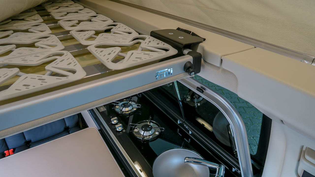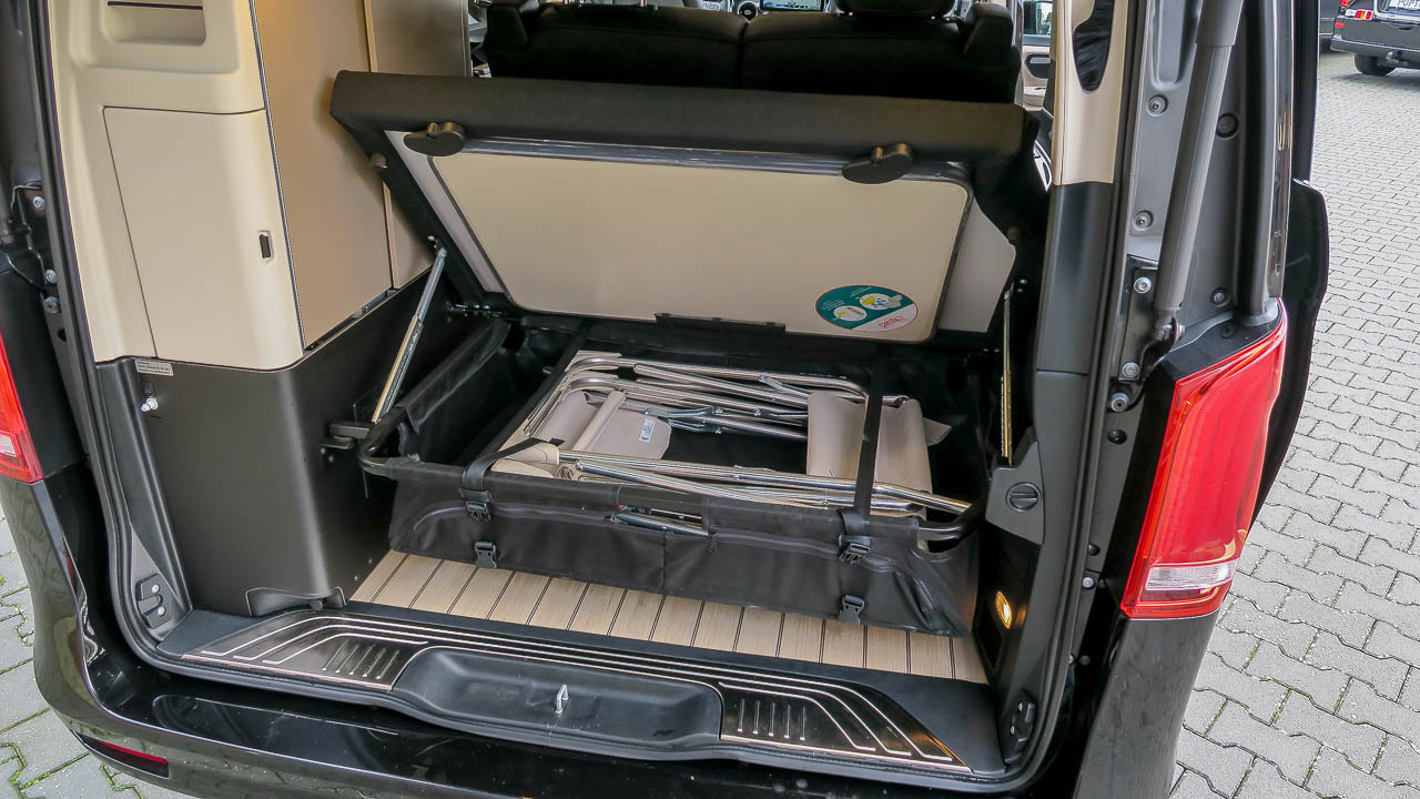 - Buitentafel opgeborgen onder achterdeel bed