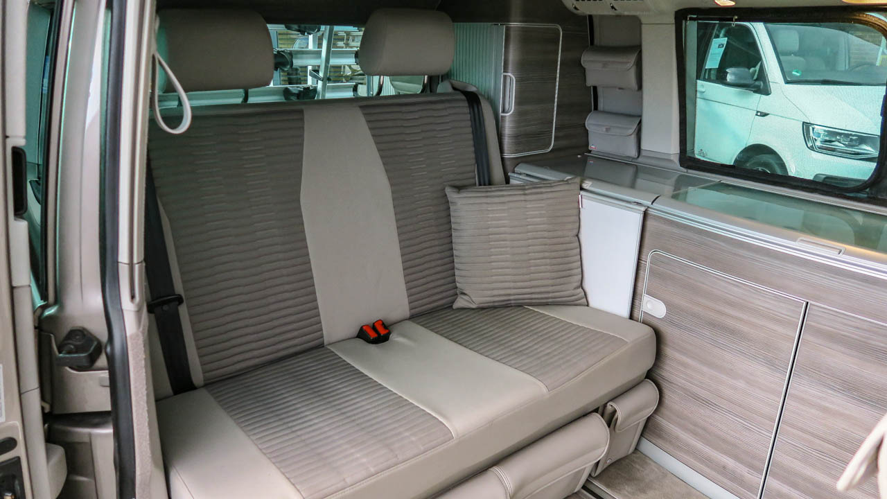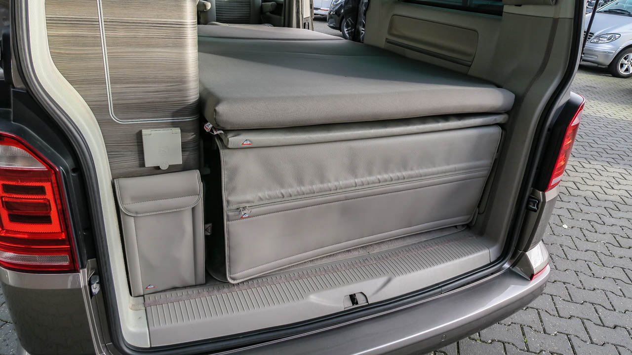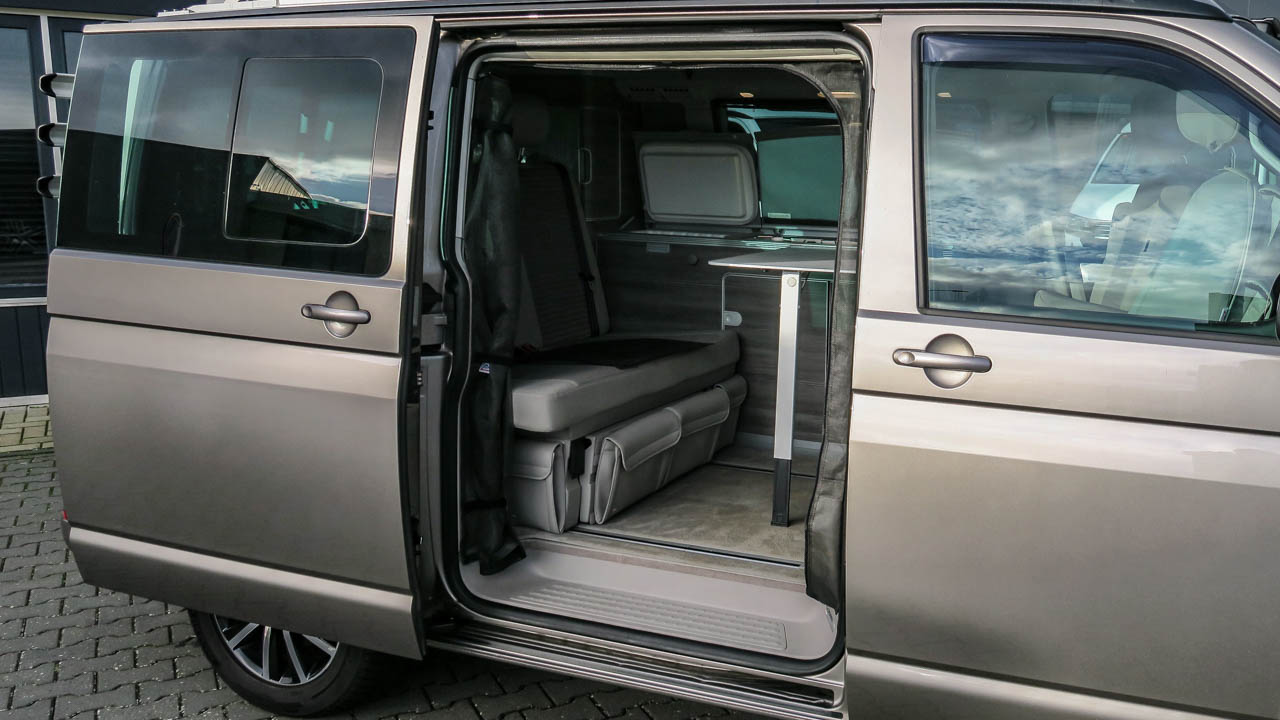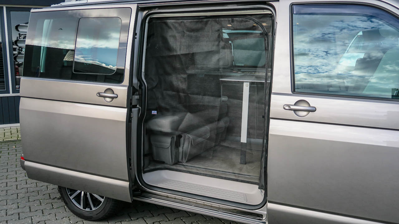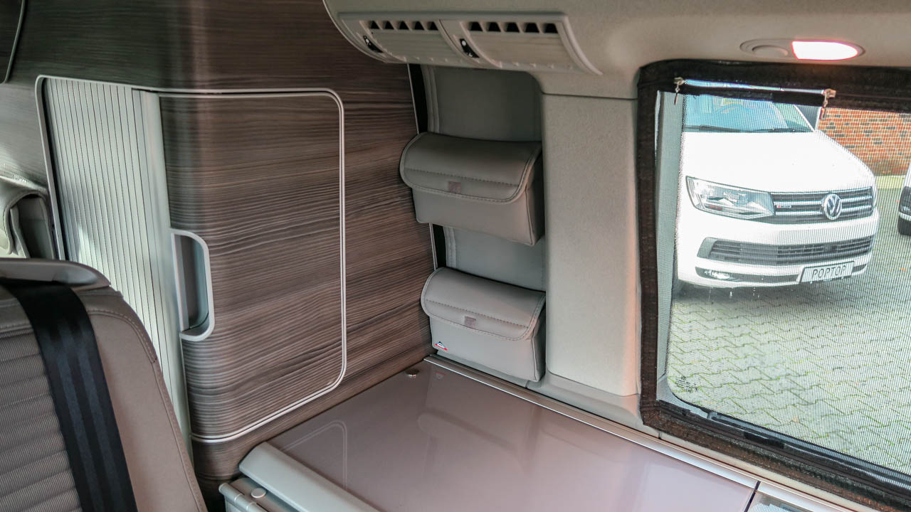 Deze T6 California heeft dienst gedaan als showmodel van de firma Brandrup en is uitgerust met vrijwel alle opbergtassen, muggenhorren, Berschermmatten en stoelhoezen uit het Brandrup assortiment dat voor de California T6 leverbaar is.
